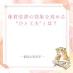 体質改善の効果を高める“ひと工夫”とは?...